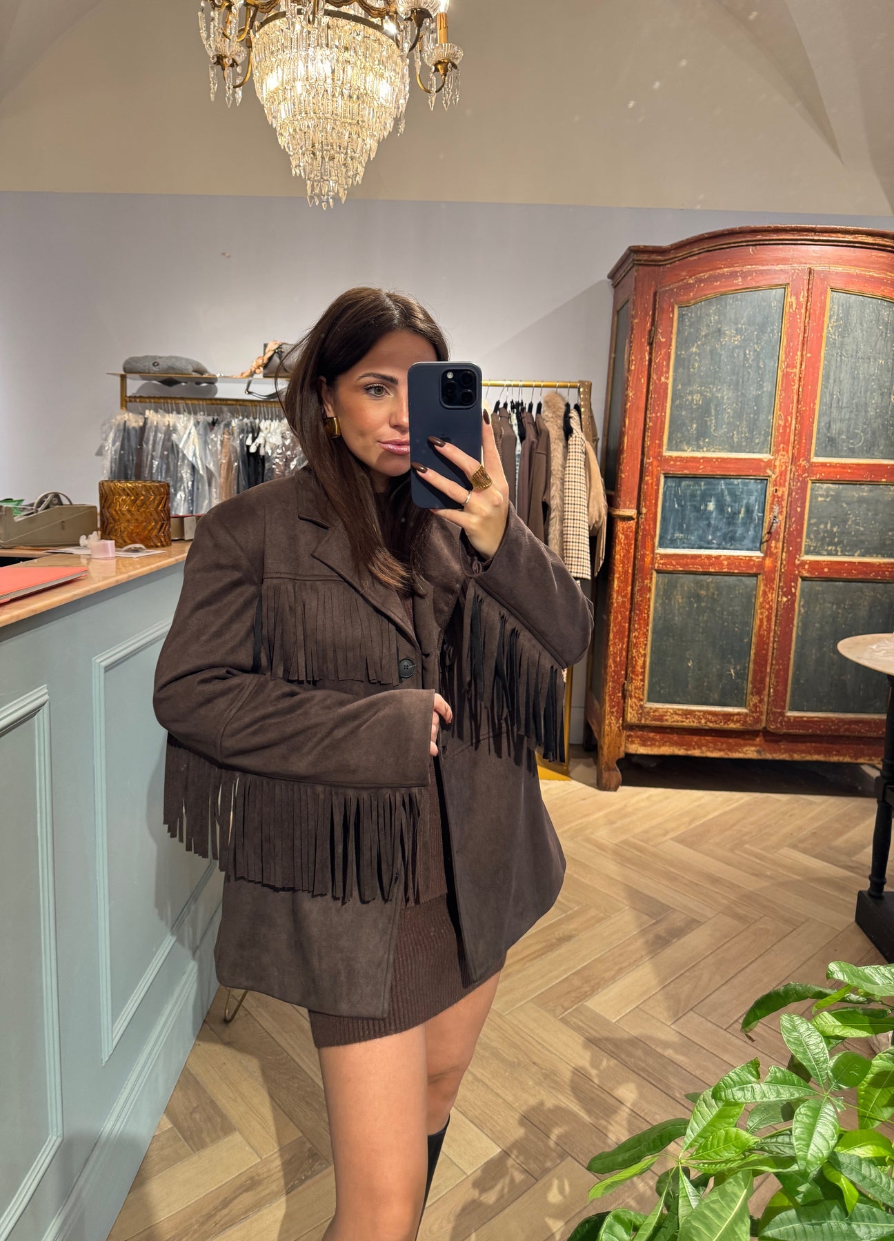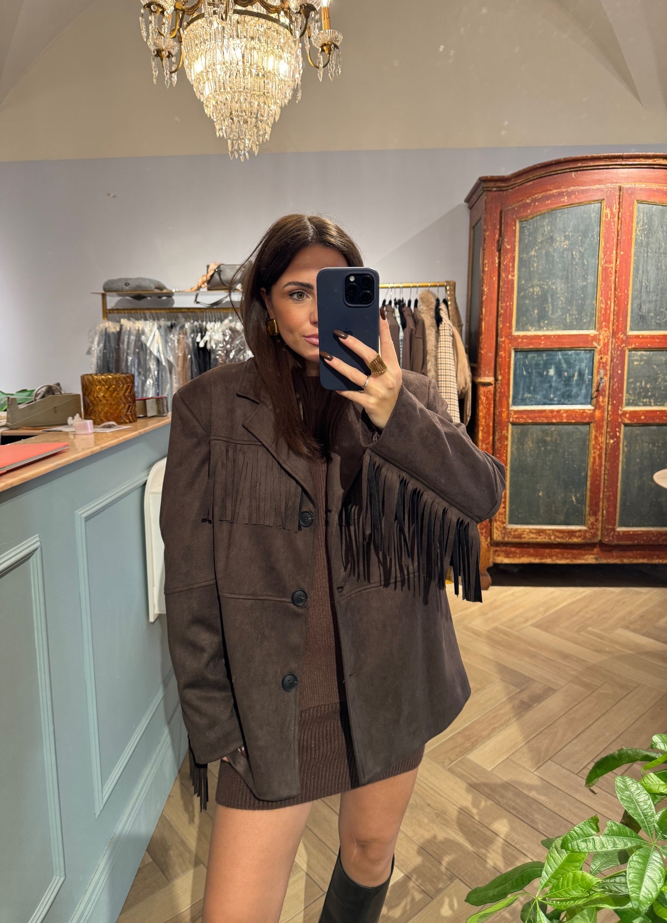 blazer con frange scamosciato