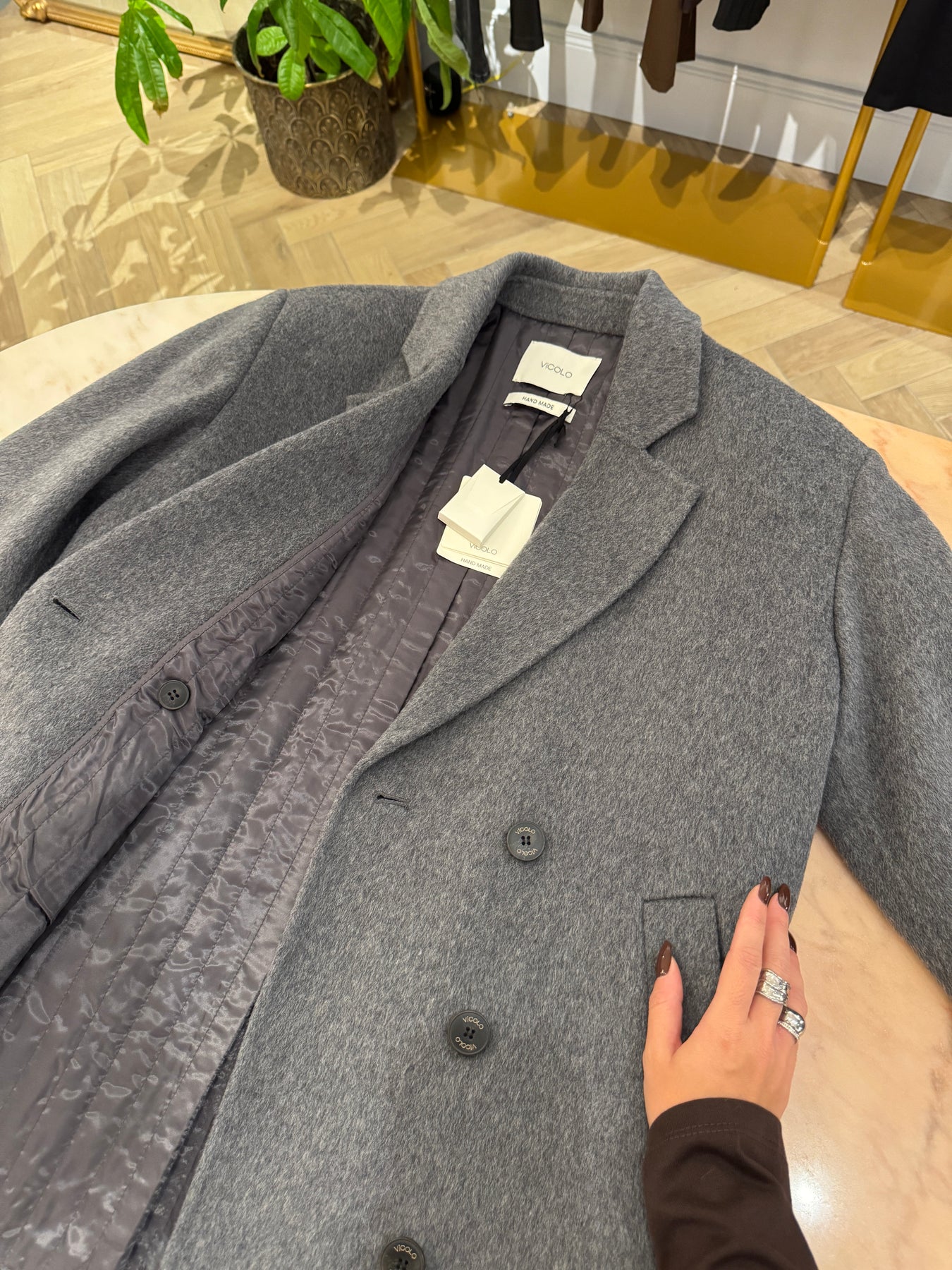 Cappotto handmade dalla vestibilità over, imbottito all interno e con un 70% lana