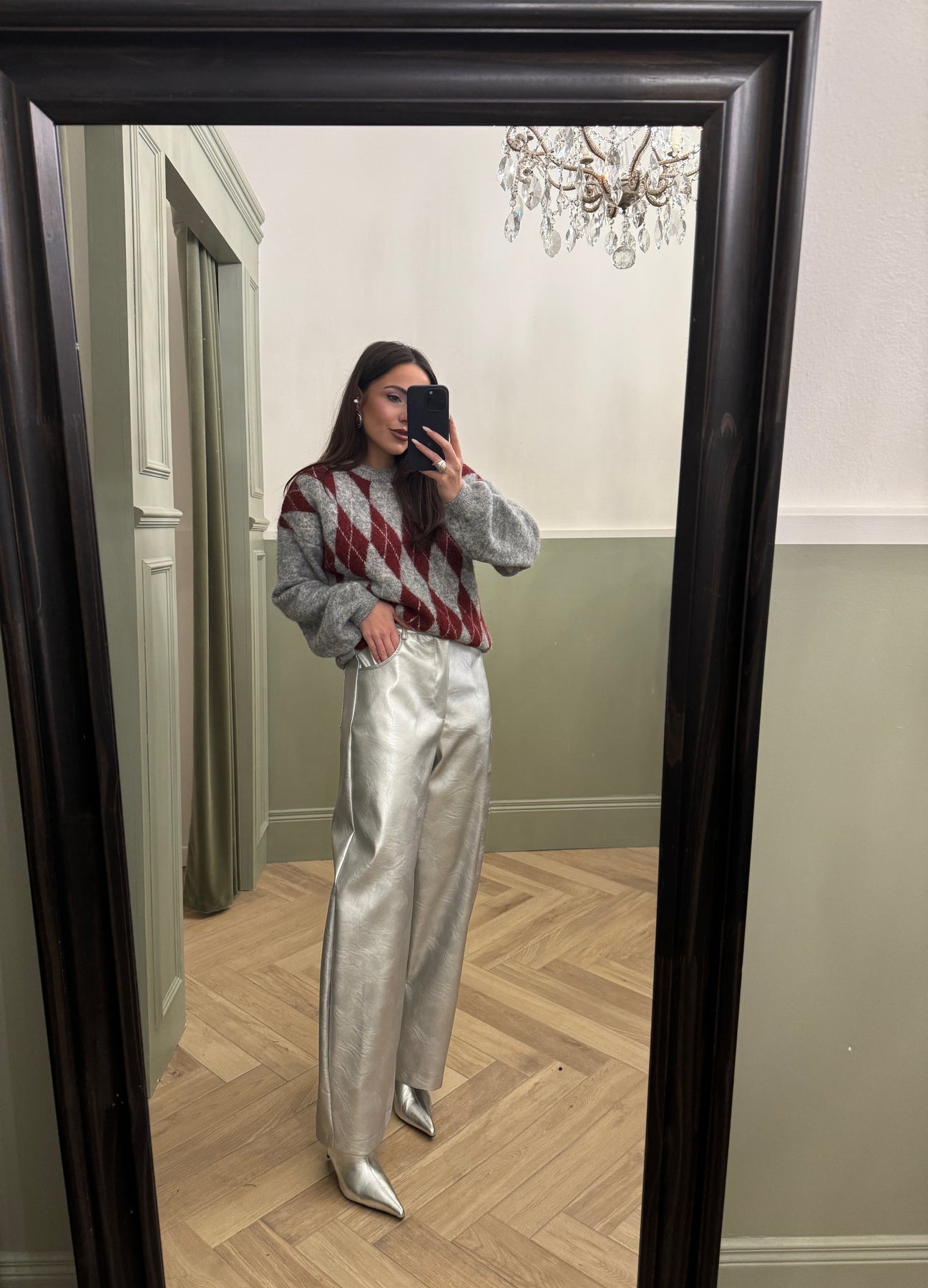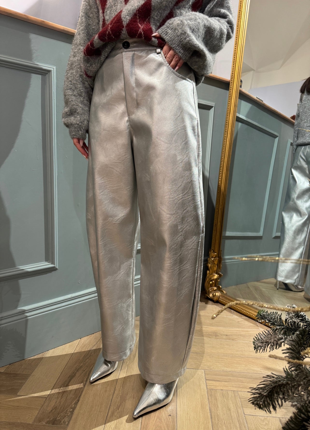 taglia indossata S , pantalone ad ovetto in ecopelle argento