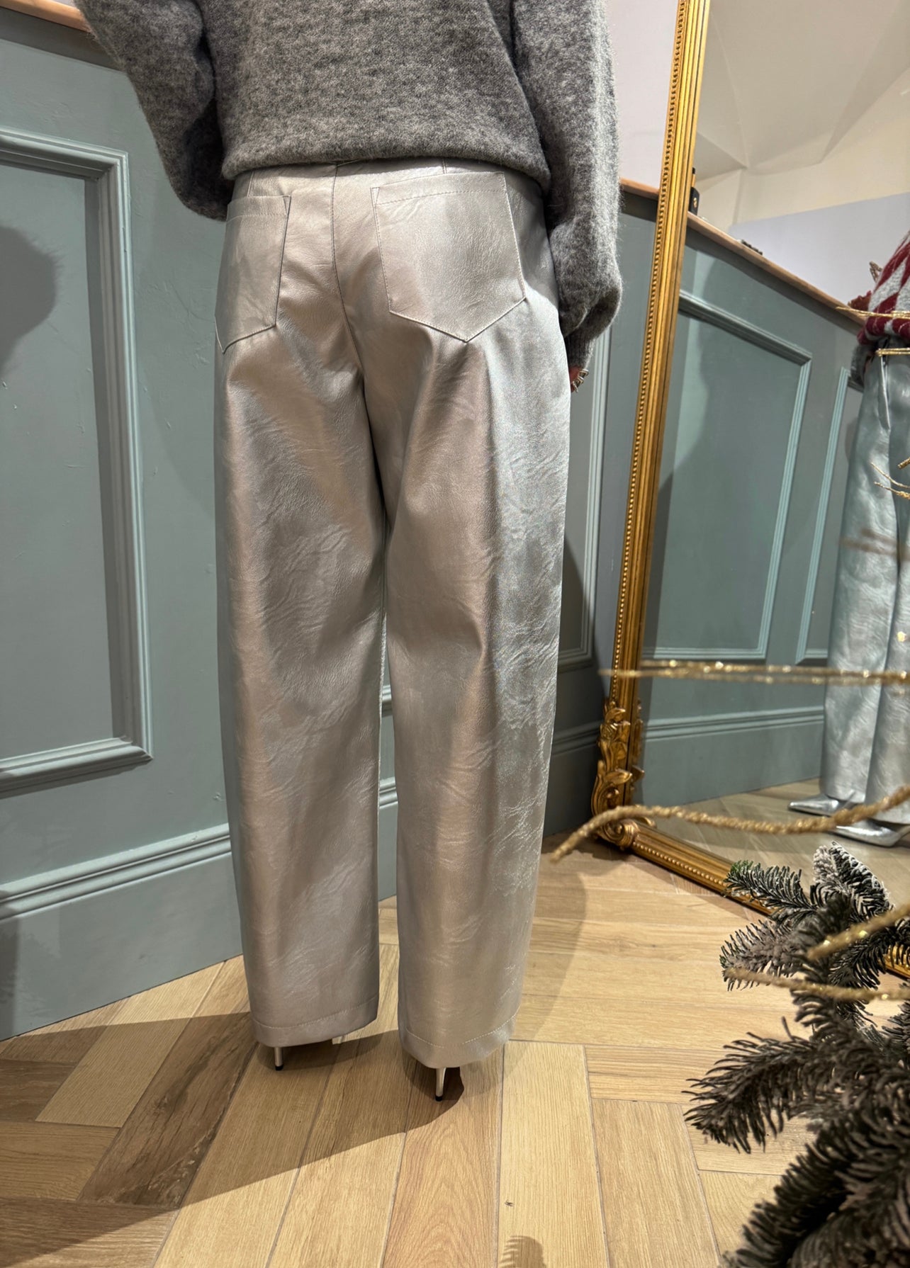 pantalone argento eco-pelle
